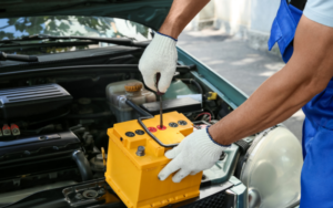 Homem testa as conexões da bateria