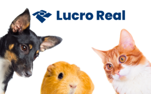 1 cão, 1 hamster e 1 gato com o título acima deles: LUCRO REAL